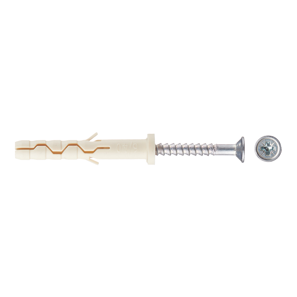 Дюбель-гвоздь предназначен для быстрого сквозного крепления различных конструкций в материал основания. В том числе направляющих гипсокартона, плинтусов, фанерного основания под паркетные полы, металлокаркаса. Надежное сцепление с материалом основания обеспечивается фиксирующими блоками на теле дюбеля. Геометрия внутреннего профиля центрирует шуруп при установке, обеспечивая равномерное раскрытие дюбеля.