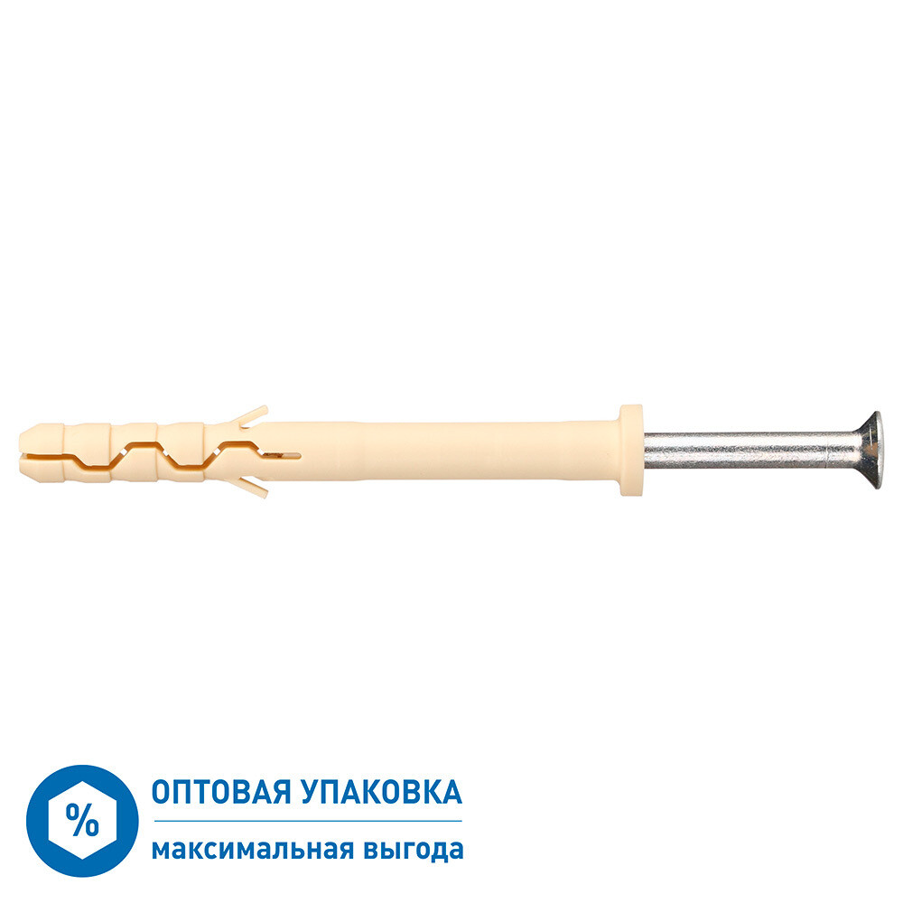 Дюбель-гвоздь нейлоновый PDG LK с цилиндрическим бортиком 6×60 мм Hard-Fix СТМ (1700 шт.) позволяет осуществлять быстрый, сквозной монтаж. Просверлите отверстие через прикрепляемый материал, ЗАБЕЙТЕ гвоздь молотком и крепление готово. Шлиц на шляпке позволяет демонтировать гвоздь выкручиванием.