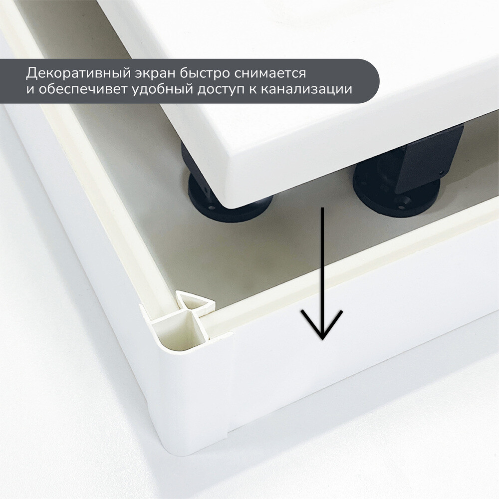 Экран выполнен из ПВХ и не подвержен воздействию влаги. Он обеспечивает простой доступ к канализации, что делает его удобным в обслуживании и быструю замену или ремонт в случае необходимости.