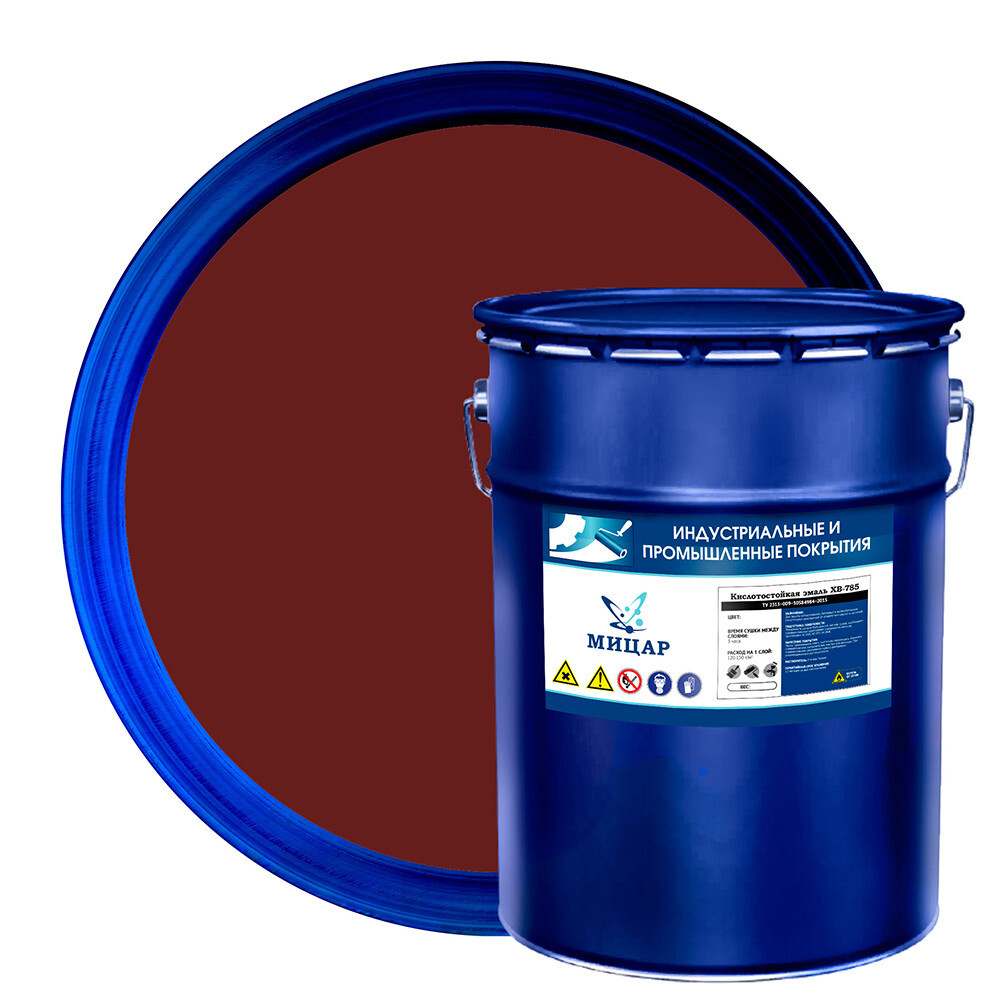 Эмаль антикоррозионная Мицар ХВ-785 красно-коричневая матовая 20 кг