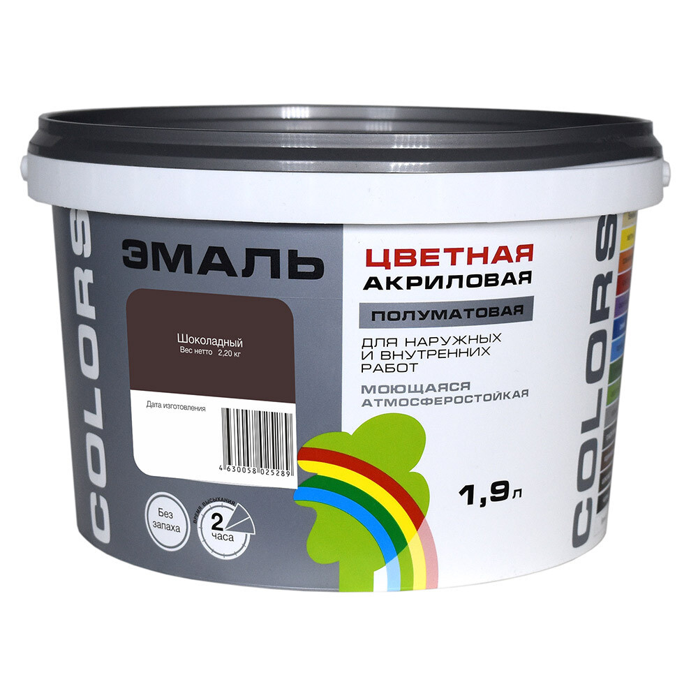 Эмаль универсальная акриловая Радуга Colors шоколадная полуматовая 1,9 л