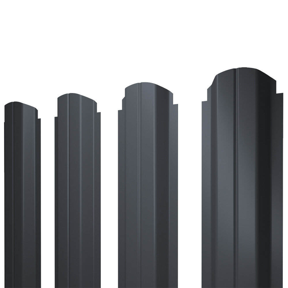 Евроштакетник двухсторонний П-образный 0,45 мм 100х2000 мм графитовый серый RAL 7024 фигурный срез