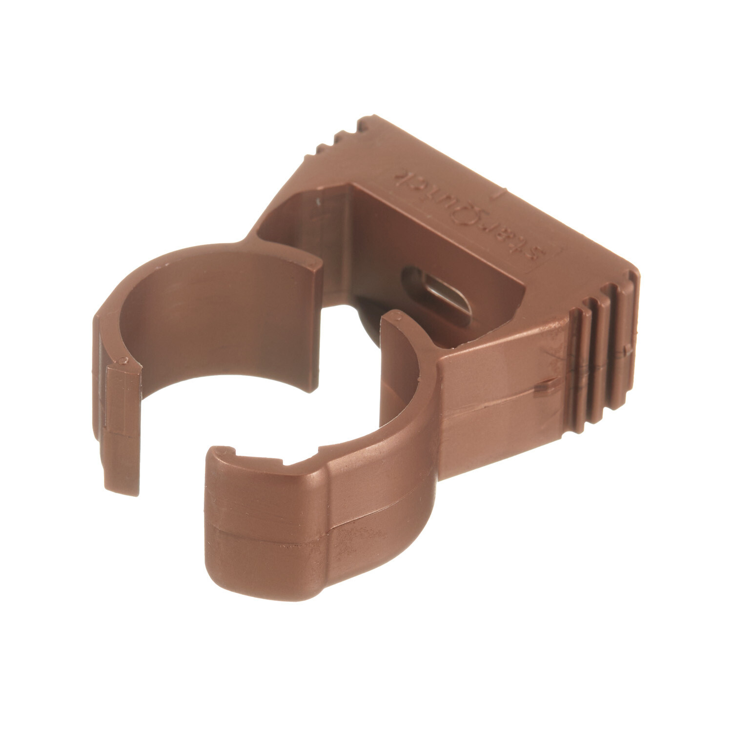Хомут закрывается при нажатии на трубу, запатентованные боковые ребра позволяют монтировать два и более хомутов друг с другом до DN25.