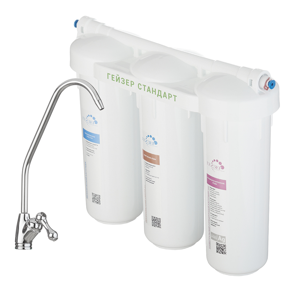 Фильтр Гейзер Стандарт специально разработан для регионов с жесткой водой (средний уровень минерализации), предназначен для доочистки питьевой воды от хлора, тяжелых металлов, органических соединений, солей жесткости, бактерий и других примесей.