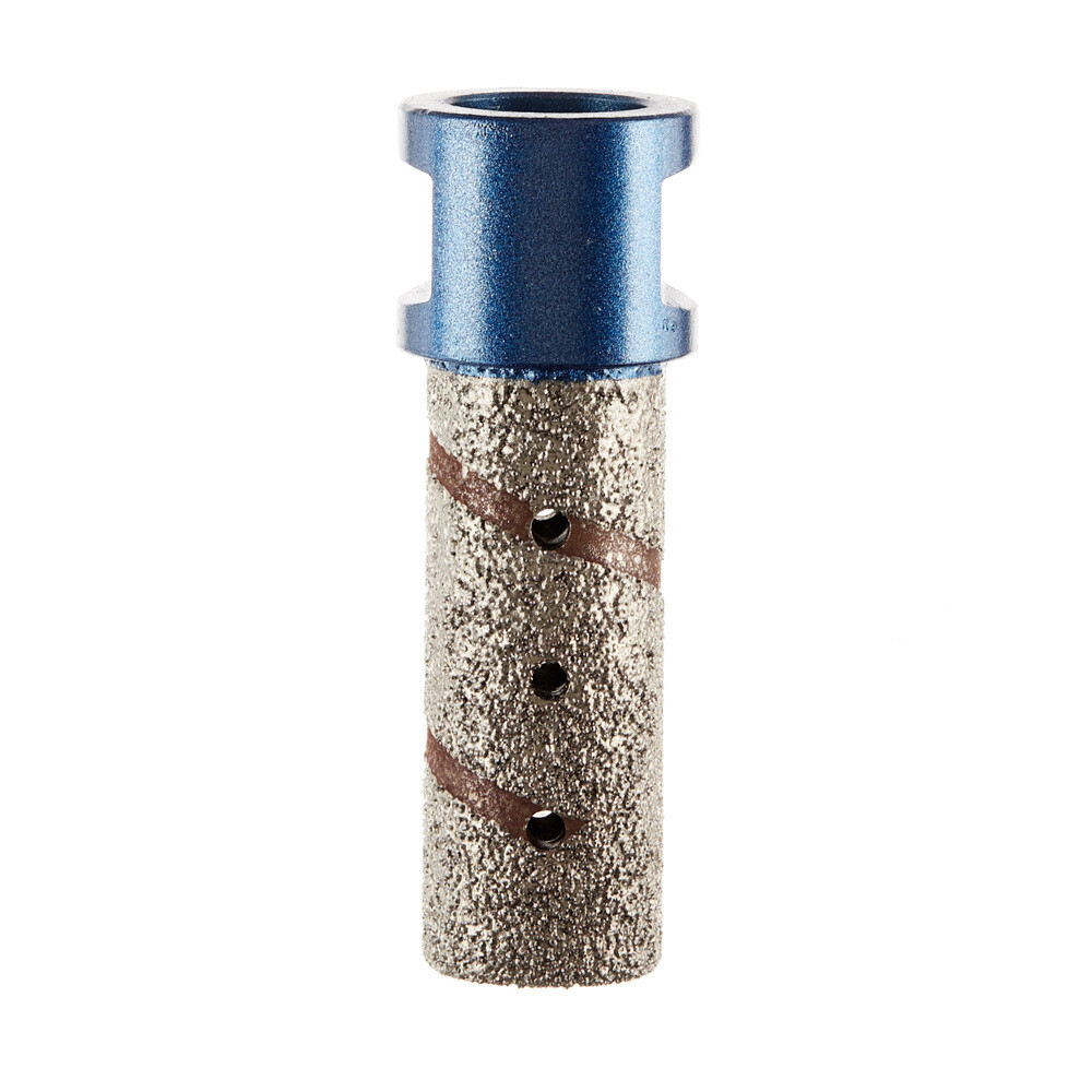 Алмазная пальчиковая фреза предназначена для работы с керамогранитом, керамикой, гранитом и мрамором. Она используется для расширения и коррекции отверстий диаметром от 20 мм, а также для доработки граней и углов плитки с помощью угловой шлифовальной машины (УШМ). Фреза оснащена резьбовым соединением М14, благодаря которому ее легко установить прямо на шпиндель УШМ, обеспечивая быструю замену оснастки. Технология вакуумной пайки гарантирует высокое качество работ и долгий срок службы фрезы.