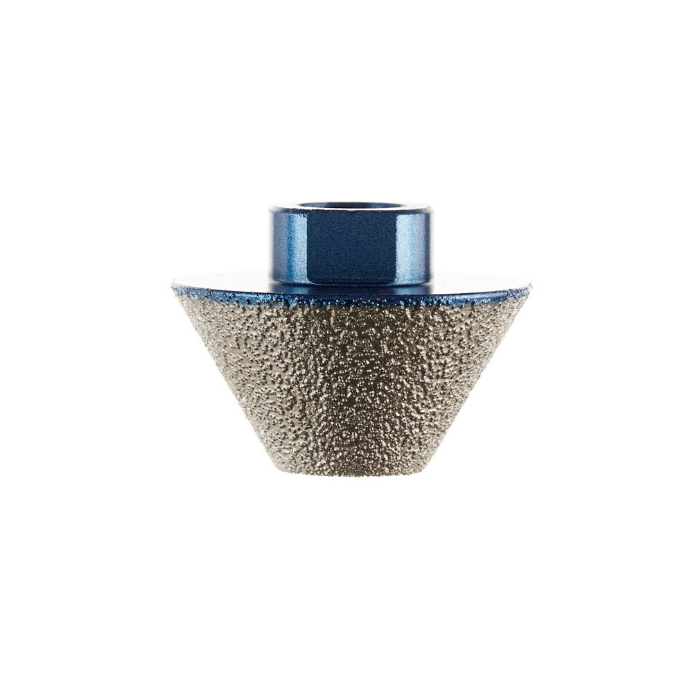 Алмазная конусная фреза предназначена для работы с керамогранитом, керамикой, гранитом и мрамором. Она используется для расширения и коррекции отверстий диаметром от 20 до 48 мм, а также для доработки граней и углов плитки с помощью угловой шлифовальной машины (УШМ). Фреза оснащена резьбовым соединением М14, благодаря которому ее легко установить прямо на шпиндель УШМ, обеспечивая быструю замену оснастки. Технология вакуумной пайки гарантирует высокое качество работ и долгий срок службы фрезы.