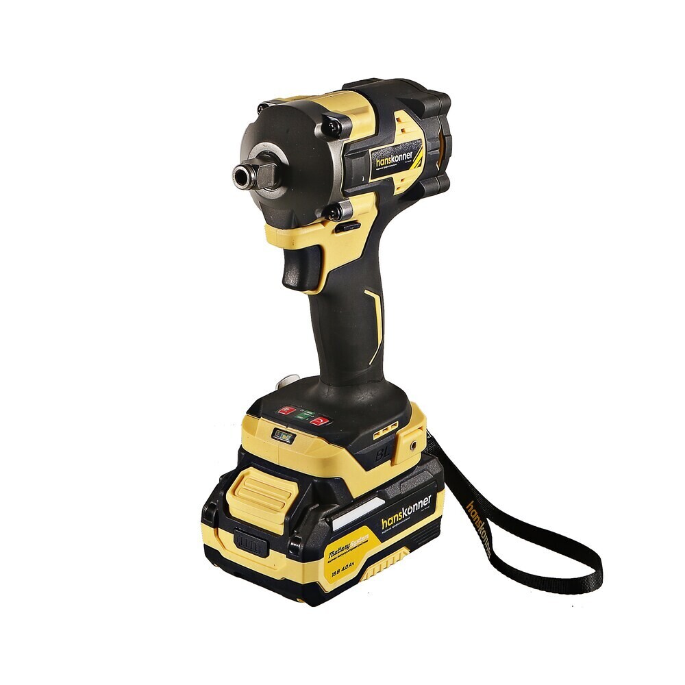 Ударный гайковерт Hanskonner обладает максимально сбалансированной компоновкой: небольшие размеры корпуса и рукояти позволяют эффективное использование в условиях с затрудненным доступом, а нейтральный центр тяжести, и обилие прорезиненных противоскользящих поверхностей способствуют надежному хвату, и лучшему контролю. Он оснащен 18 В бесщеточным двигателем, характеризующимся на 30% лучшей производительностью в сравнении с коллекторными аналогами. Кроме того, бесщеточный двигатель отлично справляется с кратковременными перегрузками и не склонен к перегреву.