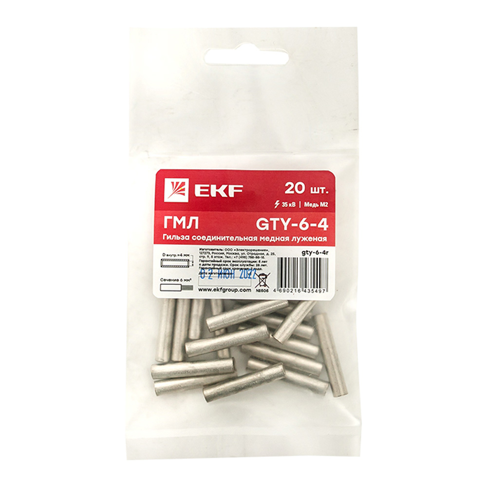 Гильза кабельная медная луженая EKF PROxima ГМЛ d4 мм 6 кв.мм (20 шт.)