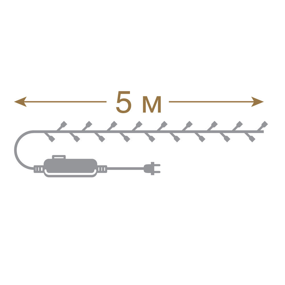 Электрогирлянда – это красивое и эффектное украшение для любого праздника или вечеринки. Состоящая из 50 светодиодов на зеленом проводе, она создаст уютную и теплую атмосферу в любом помещении. Длина гирлянды составляет 5 метров, можно легко распределить ее по всему помещению или повесить вдоль окон. Гирлянда оснащена 8 режимами мигания, что позволяет выбрать наилучший вариант для вашего вечера. Цвет свечения – разноцветный. Срок службы 25 000 часов.