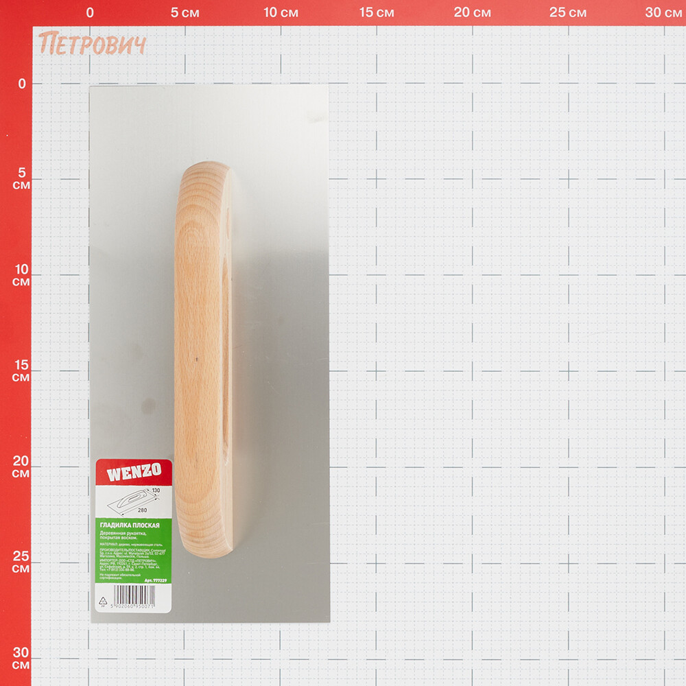 Гладилка плоская Wenzo 280х130 мм для клея и штукатурки с деревянной ручкой