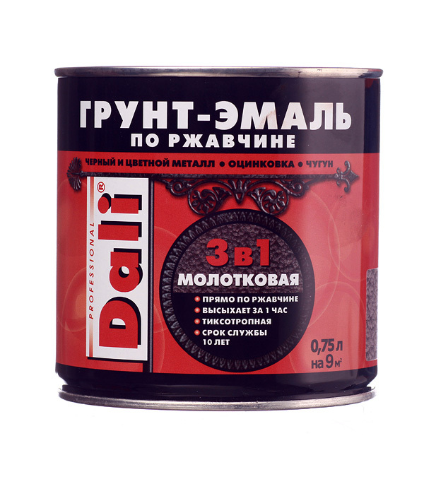 Грунт-эмаль по ржавчине 3в1 Dali серая молотковая глянцевая 0,75 л