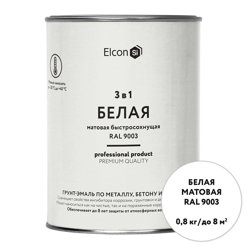 Грунт-эмаль по ржавчине 3в1 Elcon белая RAL 9003 матовая 0,8 кг