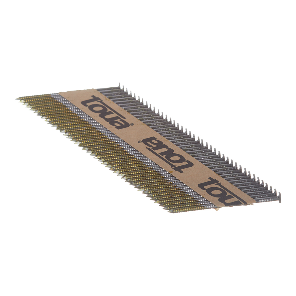 Особенностью реечных гвоздей Toua является точное соблюдение шага между гвоздями в кассете, что позволяет поршню при забивании гвоздя не задевать шляпку соседнего гвоздя и продлевает срок жизни поршня на реечном нейлере с углом наклона магазина 30-34 градуса.