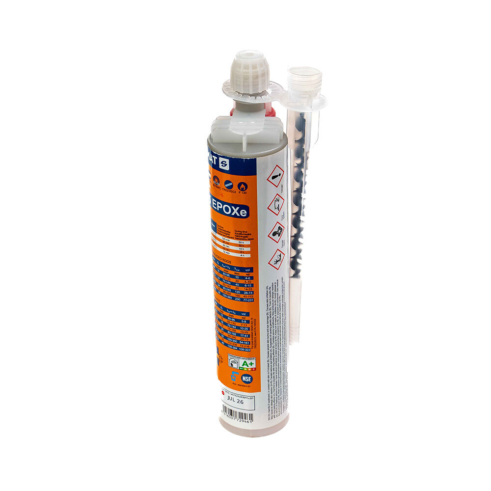 Двухкомпонентный клеевой состав на основе эпоксидной смолы, имеет допуск на установку в сжатой и растянутой зонах бетона, натуральном камне, имеет допуск работы в мокром и затопленном бетоне, а также работы под водой. Работает с разными диаметрами шпилек и арматуры.