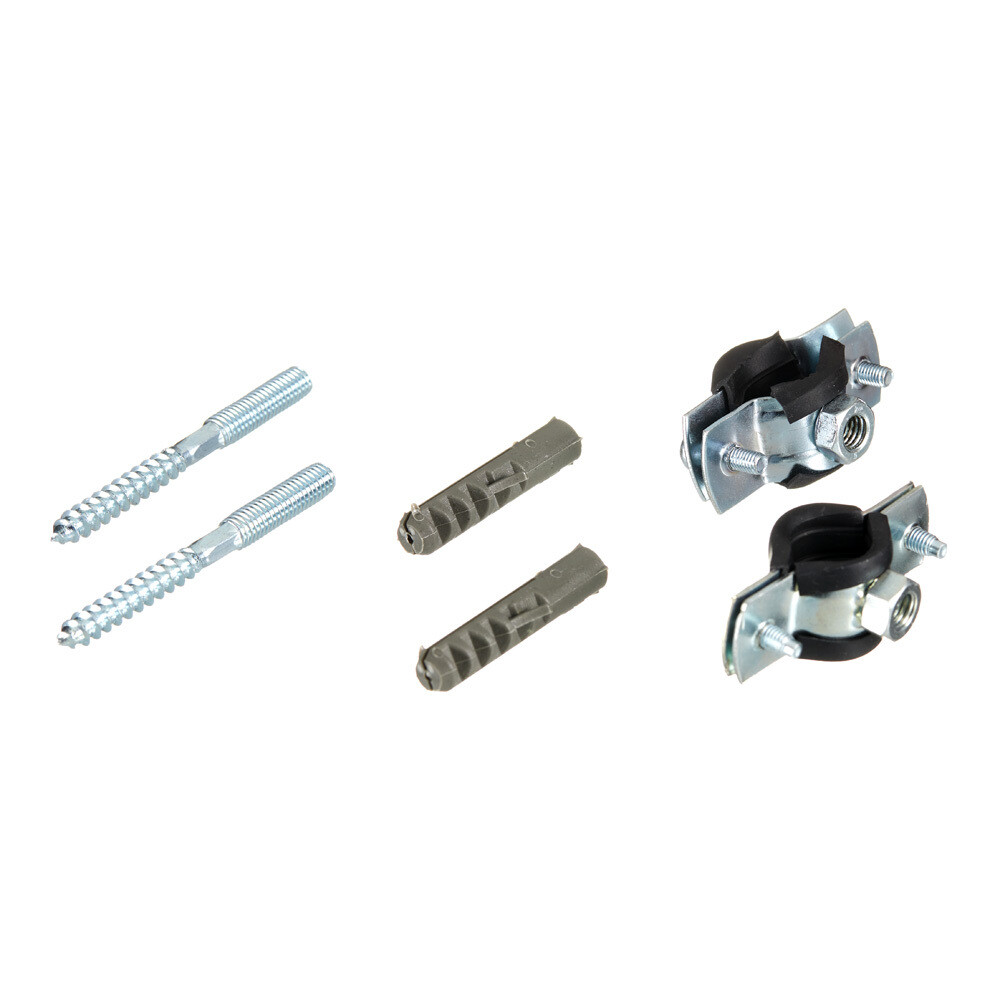 Состав: хомут, шпилька М8х80 – оцинкованная сталь, уплотнитель – резина, дюбель 10х50 мм — полипропилен.