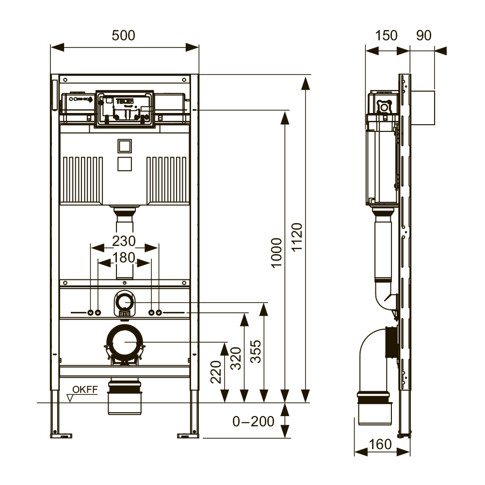 Инсталляция Tece Profil для подвесного унитаза без кнопки (9300302)