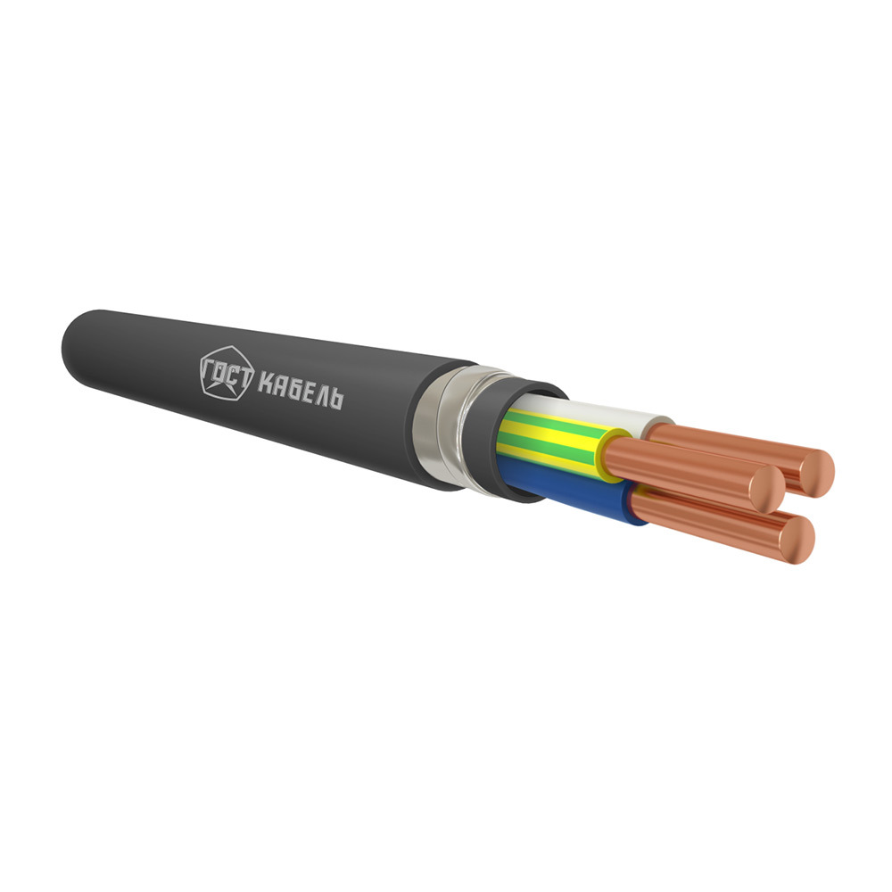 Кабель с медными жилами, с изоляцией из ПВХ пластиката, бронированный стальными лентами с защитным шлангом из ПВХ пластиката, не распространяющий горение по категории А с низким дымо- и газовыделением.