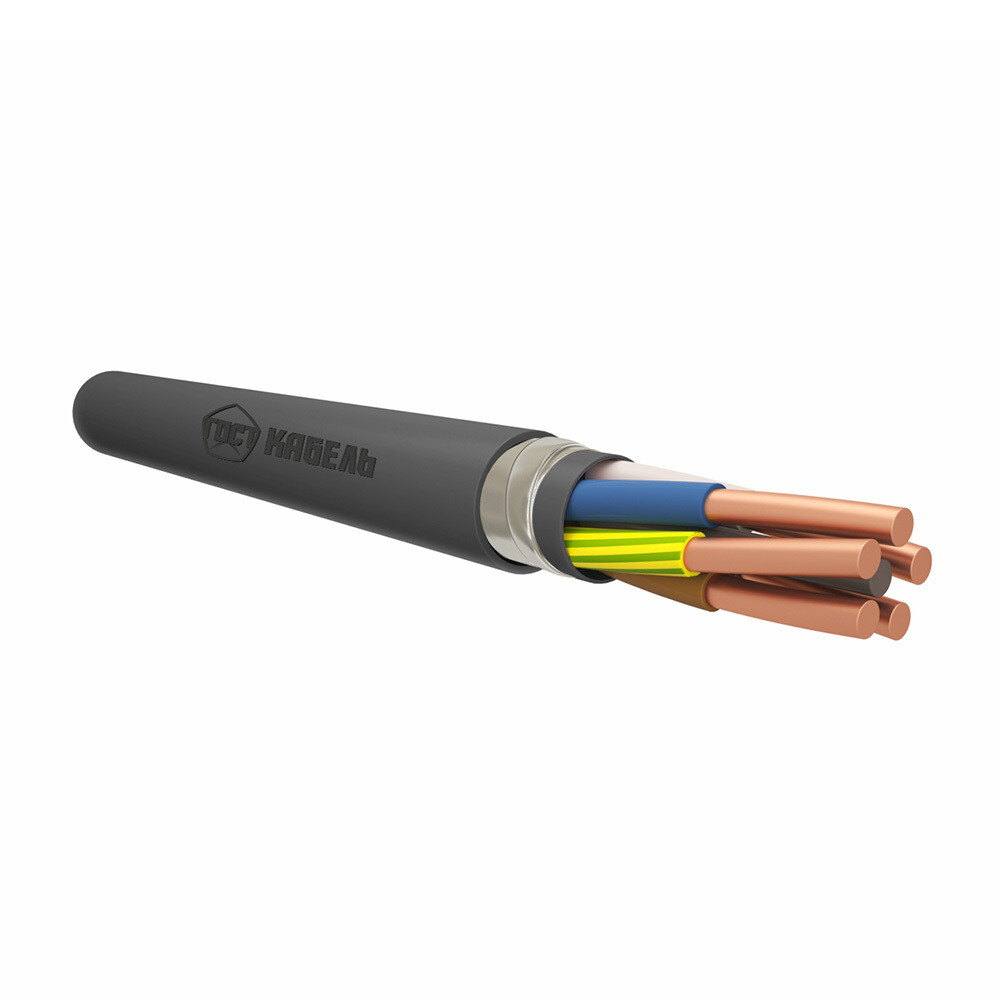 Кабель с медными жилами, с изоляцией из ПВХ пластиката, бронированный стальными лентами с защитным шлангом из ПВХ пластиката, не распространяющий горение по категории А с низким дымо – и газовыделением.