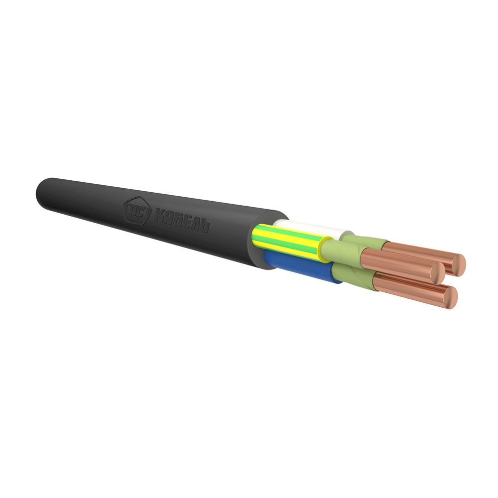 Кабель с медными жилами, с изоляцией и наружной оболочкой из ПВХ пластиката, не распространяющий горение по категории А огнестойкий с низким дымо- и газовыделением.
