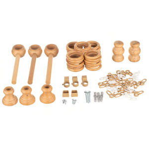 Штанга – 1 шт., Кронштейн – 3 шт., Кольцо – 25 шт., Крючок для колец – 25 шт., Наконечник – 2 шт., Направляющая – 1 шт., Крючок для направляющей – 25 шт., Комплект крепежа – 1 шт., Инструкция – 1 шт.