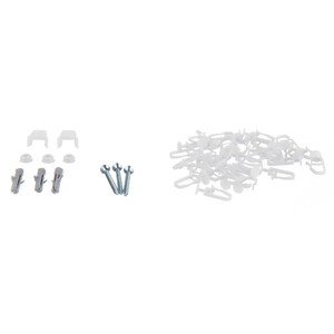 Шина – 1 шт., Стопор для пластмассовой шины – 2 шт., Заглушка для пластмассовых шин – 2 шт., Крючок для пластмассовой шины – 16 шт., Комплект крепежа – 1шт., Инструкция – 1шт.