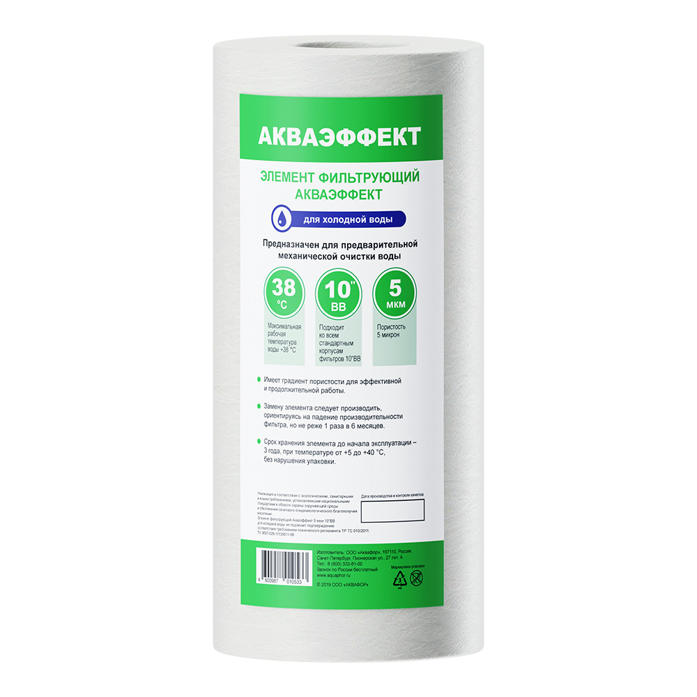 Картридж фильтра Аквафор Акваэффект для холодной воды полипропиленовый 5 мкм 10BB