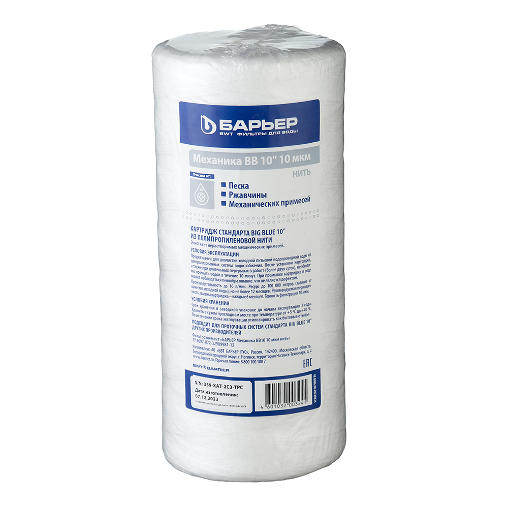 Картридж фильтра Барьер Механика для холодной воды нитяной 10 мкм 10BB