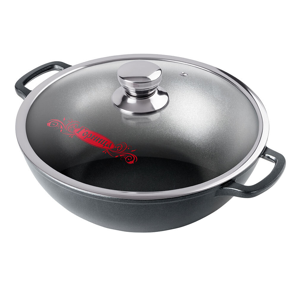 Посуда для приготовления из с антипригарным покрытием высокого качества. Изделия не подвержены деформации, долговечны. Идеально подходит для приготовления блюд на плите: газовой, электрической, стеклокерамической. Изготовлена методом ручного литья и жидкого прессования, поэтому не имеет швов. Антипригарное покрытие на водной основе экологично, безопасно и лишено химических соединений. Легко моется как вручную, так и в посудомоечной машине.