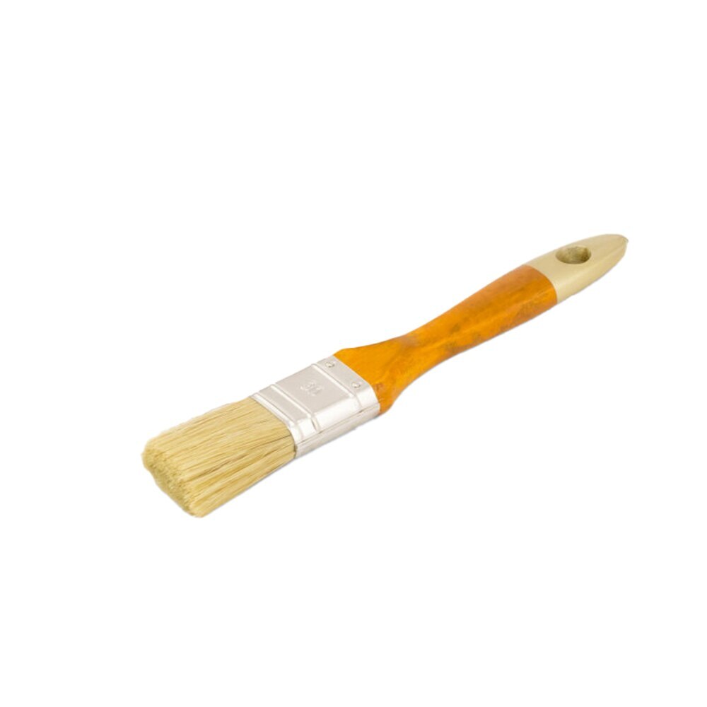 Подходит для универсального применения. Смешанная щетина, обод покрытый оловом, деревянная лакированная ручка.