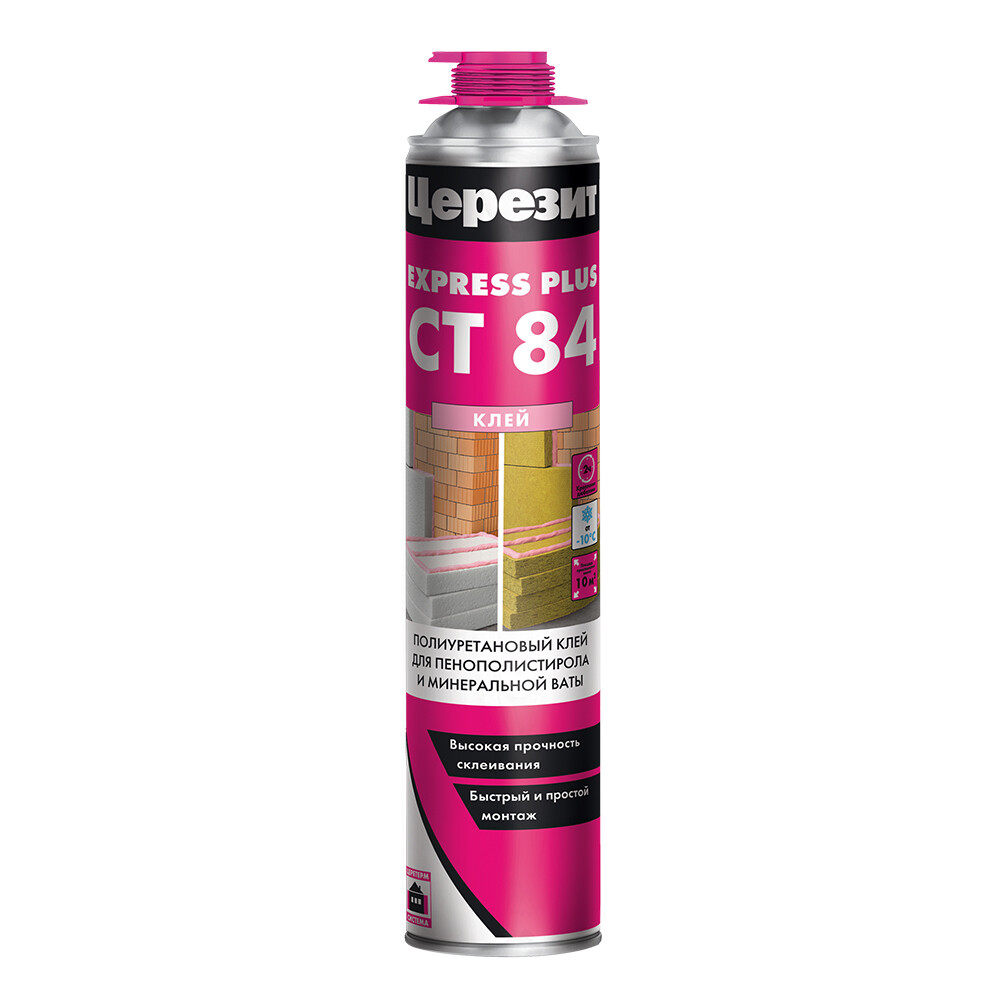 Полиуретановый клей для пенополистирола и минеральной ваты CT 84 создан для обеспечения эффективной теплоизоляции. Идеально подходит для системы «второе утепление» из-за небольшого веса — 1 м2 пенополистирольной плиты, закрепленной клеем CT 84, весит 100 г вместо 5 кг, как в случае с цементным клеем. Предназначен для крепления теплоизоляционных плит из суспензионного (EPS) и экструзионного (XPS) пенополистирола, а также минераловатных плит MW.