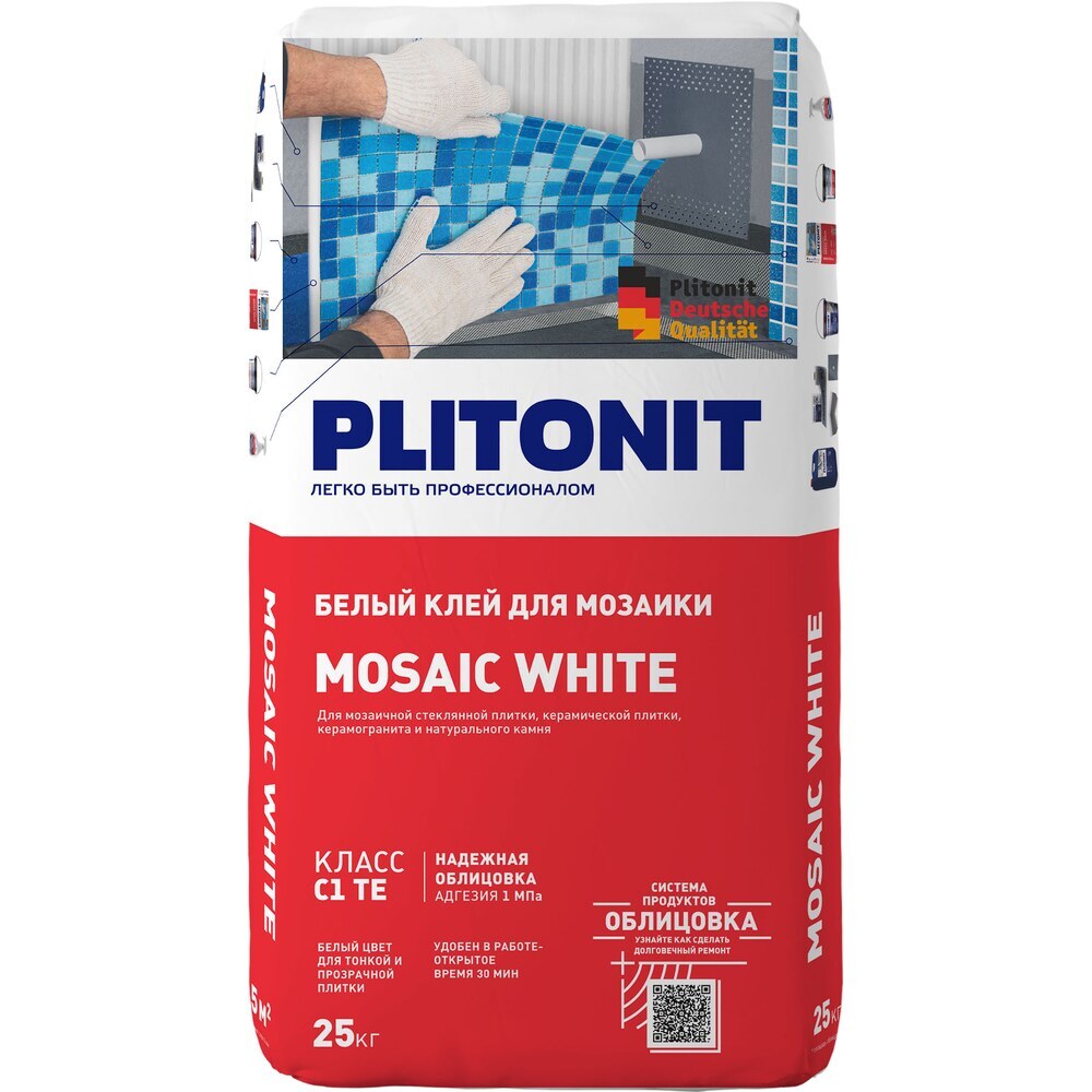 Клей для плитки/ мозаики/ камня Plitonit Mosaic White белый класс C1 TE 25 кг