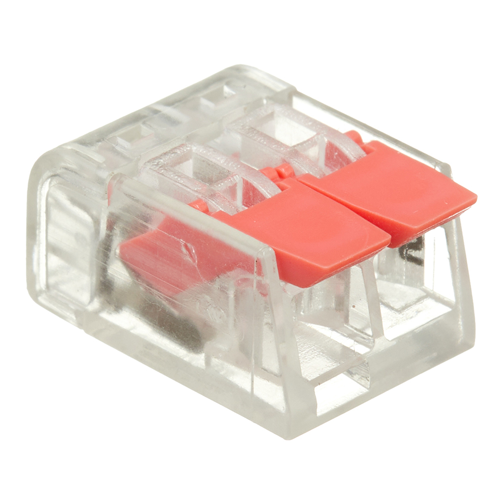 Клемма пружинная универсальная компактная Stekker LD221-412, 2-проводная (сечение одножильного/многожильного проводников) 0,14 — 4 мм2, 450 В, максимальный ток — 32 А, без пасты, материал изделия — поликарбонат, латунь. Тип провода одножильный/многожильный, материал присоединяемого проводника — медь, температура окружающей среды -20…+40°C. Клеммы серии 221 удобны тем, что конструкция позволяет визуально проверить контакт без лишних трудностей, т.к. зажимы имеют прозрачный корпус.