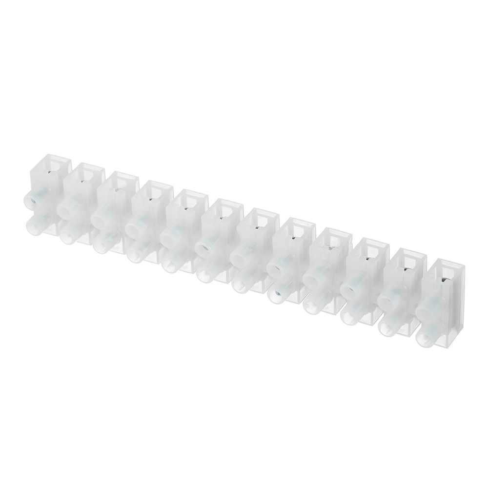 Соединение осуществляется с помощью медных контактов. Кабели и провода фиксируются винтовым зажимом. Клеммная колодка изготовлена из полупрозрачного полиэтилена.
