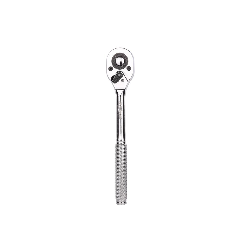 Трещотка AV Steel 1/2″ 45 зубца 255 мм с металлической рукояткой предназначена для быстрого закручивания или откручивания гаек. 45-зубцовый механизм привода трещотки позволяет осуществлять переход в 8°.