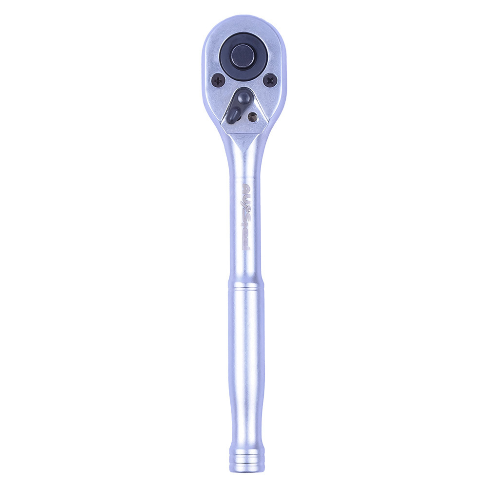 Трещотка AV Steel 3/8″ 24 зубца 200 мм с металлической гладкой рукояткой предназначена для быстрого закручивания или откручивания гаек. 24-зубцовый механизм привода трещотки позволяет осуществлять переход в 15°.