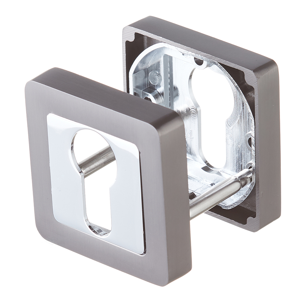 Накладки на квадратном основании Punto ET серии QR из коллекции SIMPLE LIVING под цилиндровый механизм, предназначены для декорирования замочной скважины. Материал изготовления: ZAMAK (сплав цинка, алюминия, магния и меди). Гальваническое покрытие прошло тест на устойчивость к коррозии в соляном тумане и соответствует 1 классу ГОСТ. Крепежная фурнитура в комплекте.