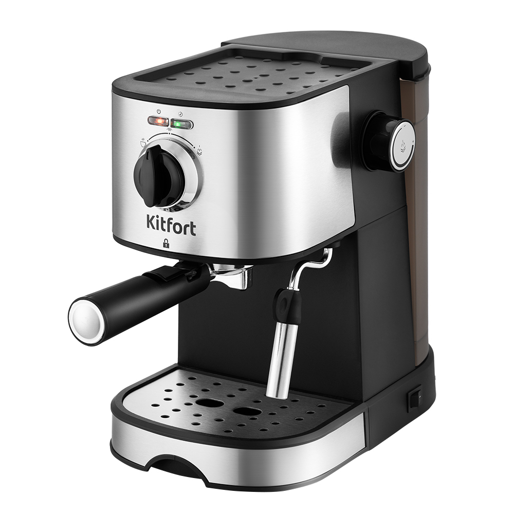 Рожковая кофеварка Kitfort КТ-753 приготовит ароматный кофе эспрессо, капучино или латте, а также множество других видов кофе. Приготовление займет 20-30 секунд. Капучинатор в кофеварке — это паровая трубка с насадкой панарелло. Трубку погружают в холодное молоко, включают подачу пара и взбивают молочную пенку. С помощью ручек управления на корпусе кофеварки можно настраивать уровень подачи пара, а также режим работы — подача воды, нагрев воды или приготовление пара. Индикаторы питания и нагрева располагаются на передней панели прибора. Поддон для сбора капель с решеткой из нержавеющей стали легко снимается, моется и устанавливается обратно. Металлический рожок и мерная ложка-темпер в комплекте. Металлический фильтр с лазерным нанесением отверстий долговечен и не требует использования каких-либо расходующихся частей. Резервуар для воды емкостью 1 л.