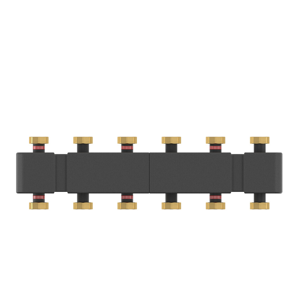 Коллектор Meiflow TOP S до 85 кВт для установки до 5 насосных групп с EPP изоляцией и с регулируемым монтажным кронштейном, для подключения до 5-ти насосных групп, направленными вверх или вниз, предназначен для насосных групп с межосевыми расстоянием 125 мм.