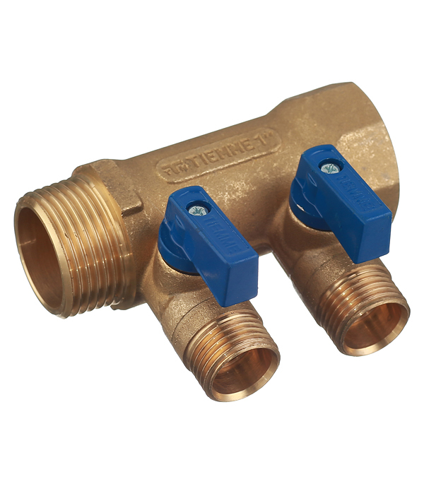 Предназначен для равномерного распределения и поступления воды от главного трубопровода по металлопластиковым трубам к сантехнике и другим потребителям без потери напора воды. Позволяет изолировать часть системы в случае неисправностей и проводить ремонт, не производя при этом общего отключения водоснабжения. Используется для разделения потока воды из одной трубы на две линии. Имеет с одного входа внутреннюю резьбу 1″ (25 мм) с другого входа наружную резьбу 1″ (25 мм), что позволяет соединять коллекторы между собой, увеличивая количество отводимых линий. Ручки синего цвета. Межосевое расстояние между отводами 36 мм.