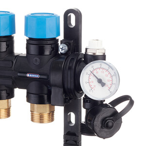 Предназначена для распределения потоков теплоносителя в системах радиаторного или напольного отопления. Состоит из подающего коллектора с расходомерами и обратного – с термостатическими клапанами, на которые можно установить электротермические сервоприводы. Позволяет проводить регулировку отдельно в каждом контуре системы. Присоединение труб осуществляется с помощью фитингов стандарта «евроконус».