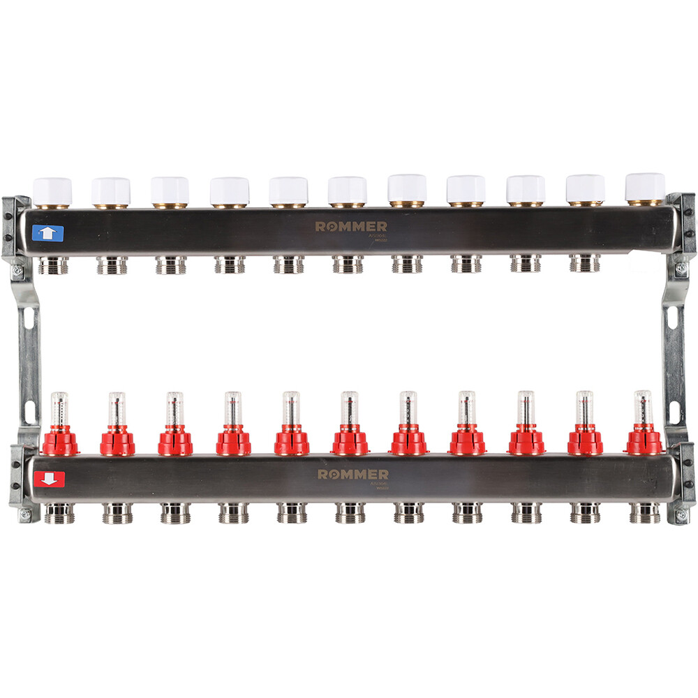 Коллекторная группа с расходомерами Rommer 1 ВР(г) х 11 выходов 3/4 НР(ш) ЕК х 1 ВР(г)