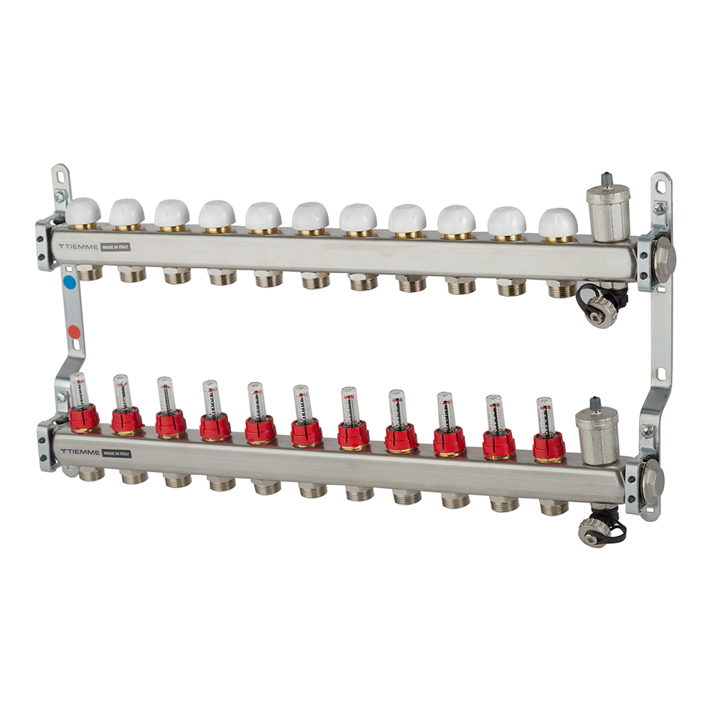 Коллекторная группа с расходомерами Tiemme 1 ВР(г) х 11 выходов 3/4 НР(ш) ЕК х 1 ВР(г)