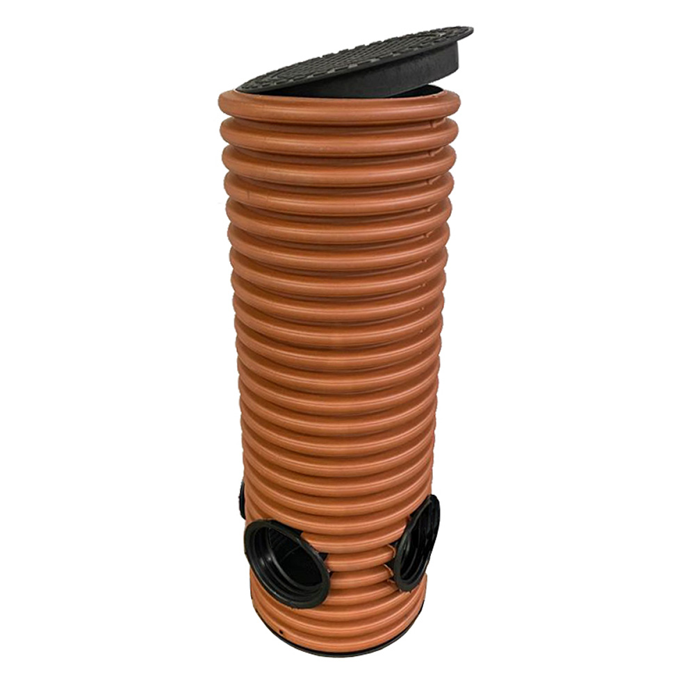 Колодец дренажный смотровой 368/315х1000 мм с тремя отводами 160 мм с дном и крышкой