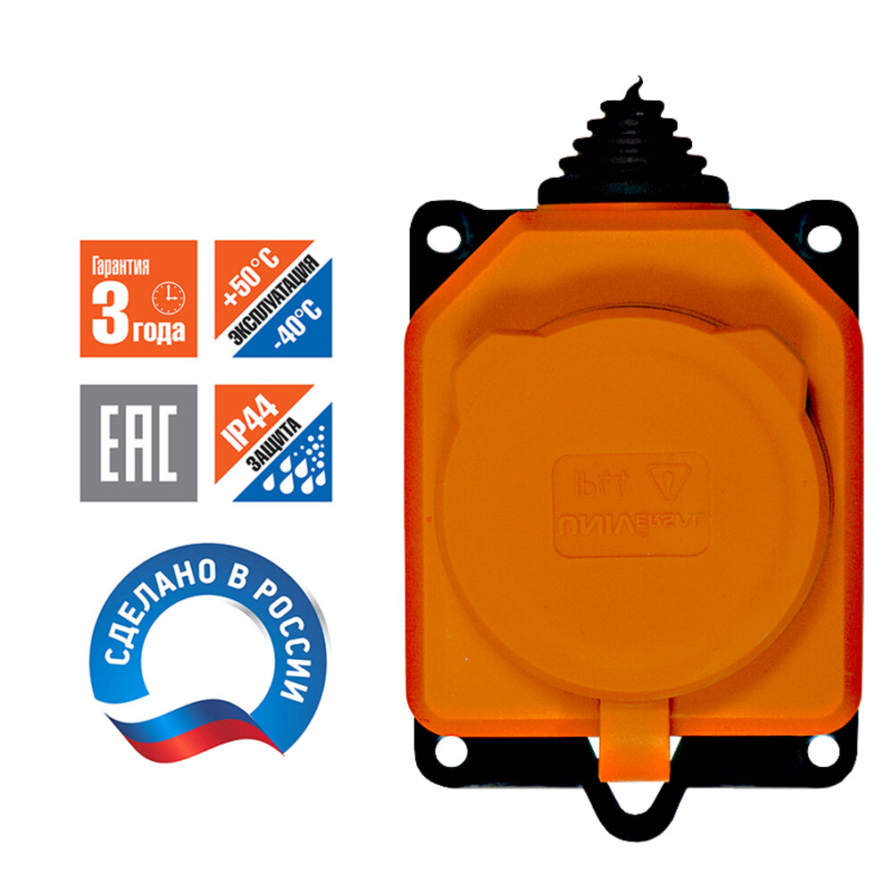 Колодка розеточная может быть использована для производства удлинителей, а также, благодаря наличию крепежных отверстий на задней крышке корпуса, в качестве блока розеток для открытой установки внутри и снаружи производственных помещений. Корпус изготовлен из каучука, который обладает хорошими электроизоляционными свойствами, высокой износостойкостью.