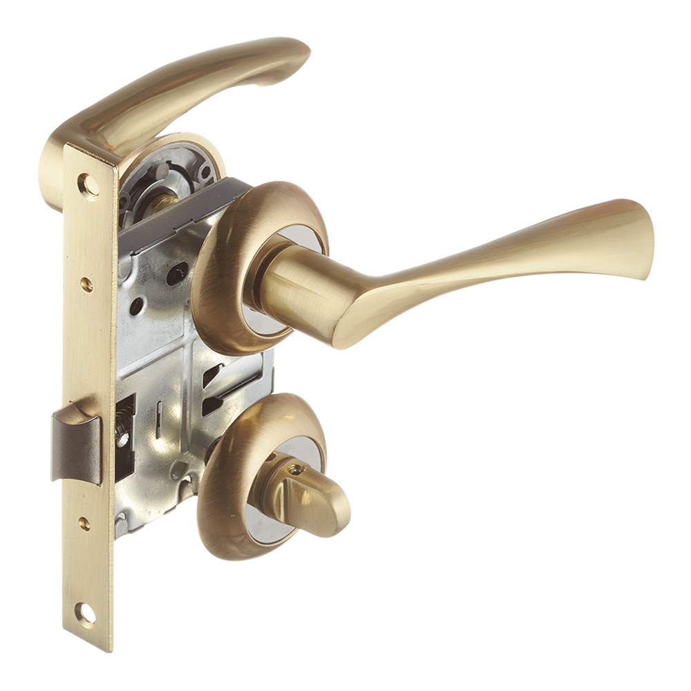 Комплект фурнитуры для двери Corsa Deco Willow с замком и фиксатором круглая розетка золото