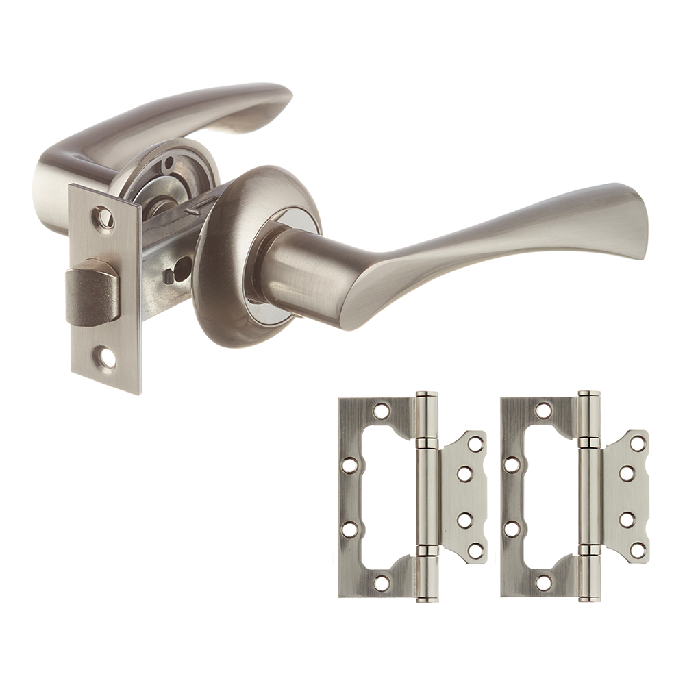 Комплект фурнитуры для двери Corsa Deco Willow с защелкой и петлями круглая розетка матовый никель