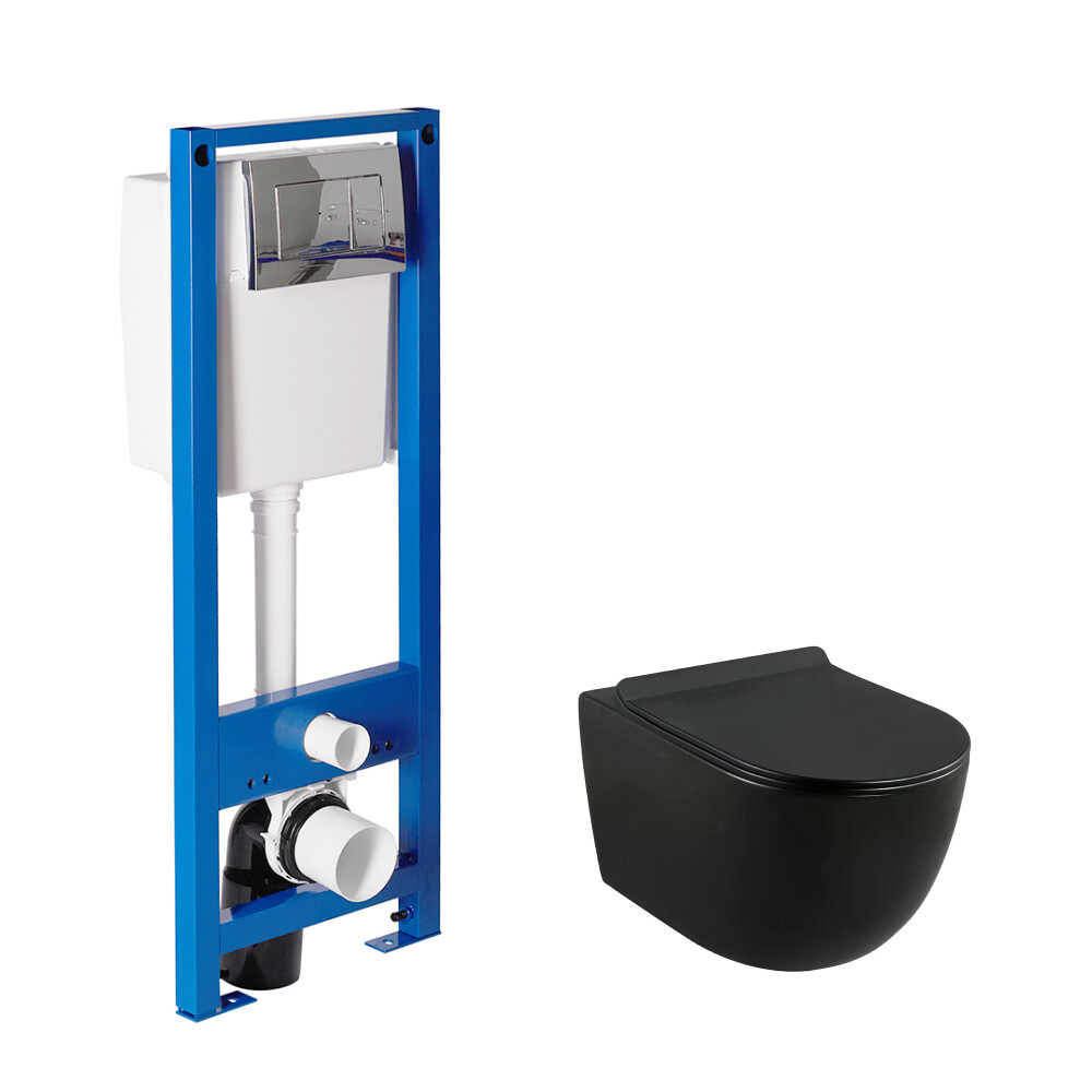 Комплект инсталляции Berges с унитазом Lavelly Classic Black с кнопкой хром и сиденьем дюропласт микролифт быстросъем