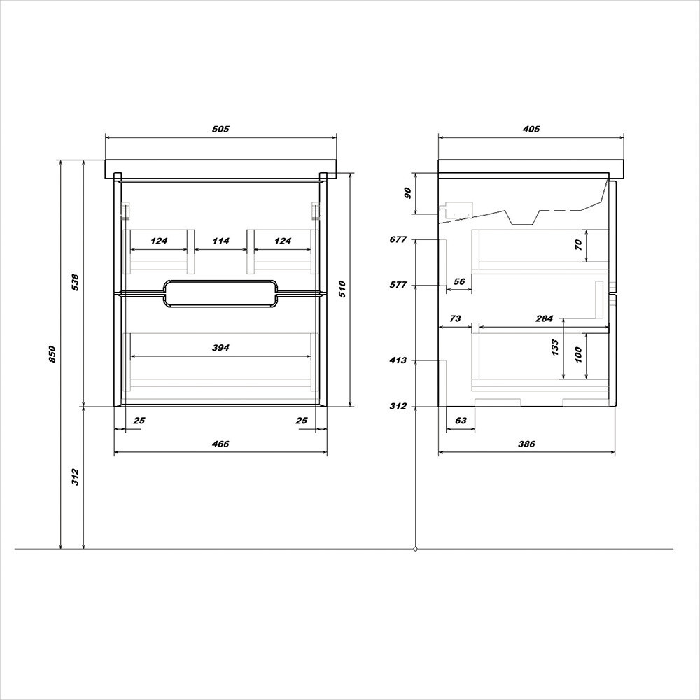 Тумба подвесная Noche 50 комплектуется раковиной Комо 50. Выполнена в современном стиле. Корпус изготовлен из влагостойкого ЛДСП, фасады из МДФ, покрытые матовой пленкой Графит Софт. Два выдвижных ящика с направляющими скрытого монтажа и доводчиками имеют мягкое закрывание.