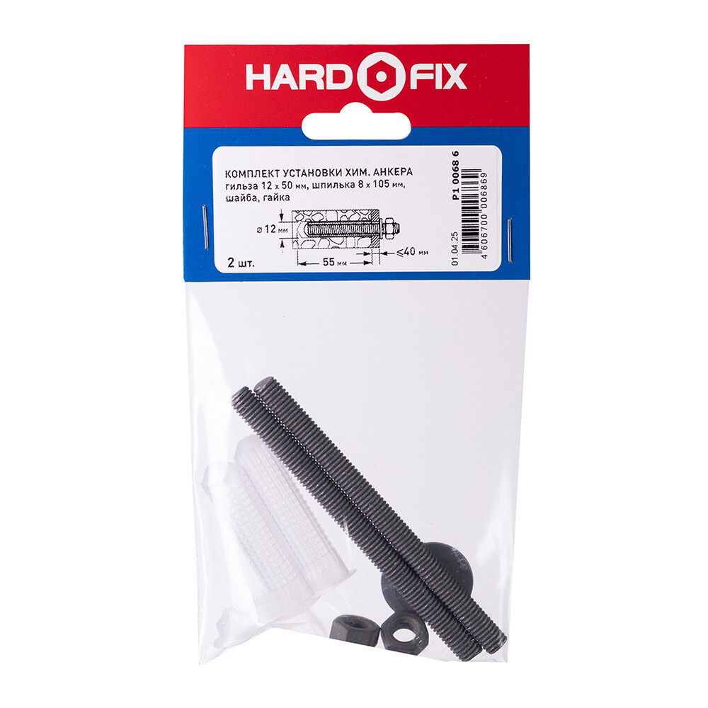 Комплект установки для химического анкера шпилька 8х105 мм гильза 12х50 мм Hard-Fix (2 шт.)