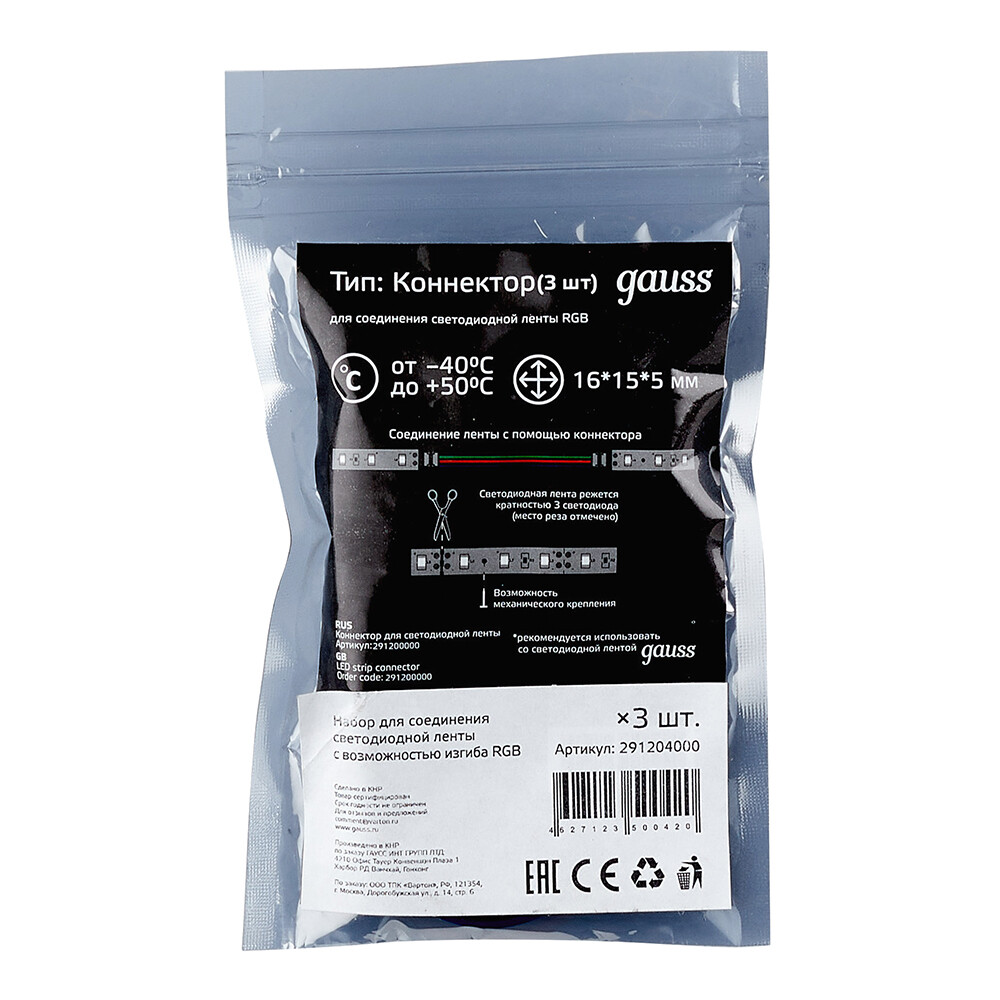 Коннектор для светодиодной ленты RGB Gauss (291204000) гибкий (3 шт.)